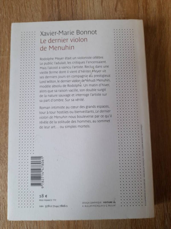 Le dernier violon de Menuhin - Xavier-Marie Bonnot -Belfond -2017