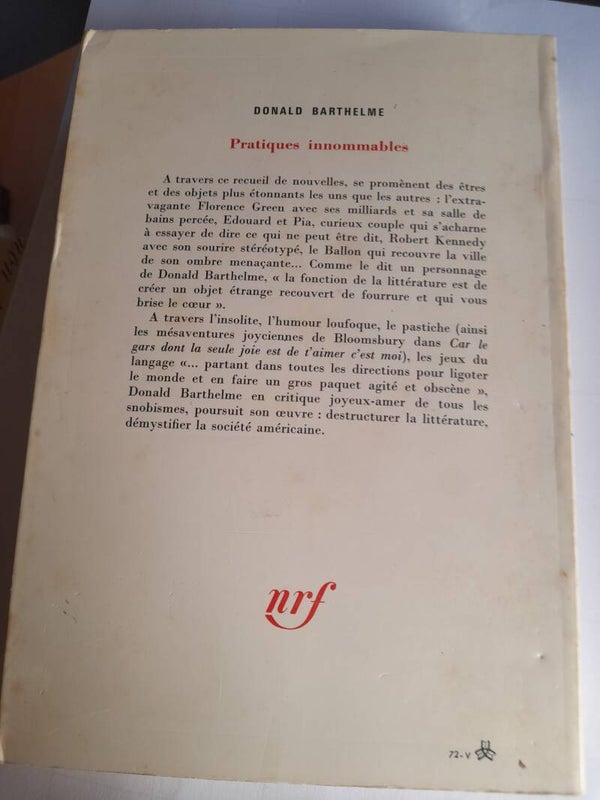 Pratiques innommables (nouvelles) - Donald Barthelme Gallimard du monde entier - 1972